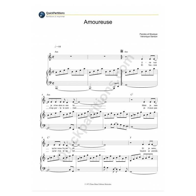 AMOUREUSEPerformer : Véronique SANSON Sheet music for piano vocal chords