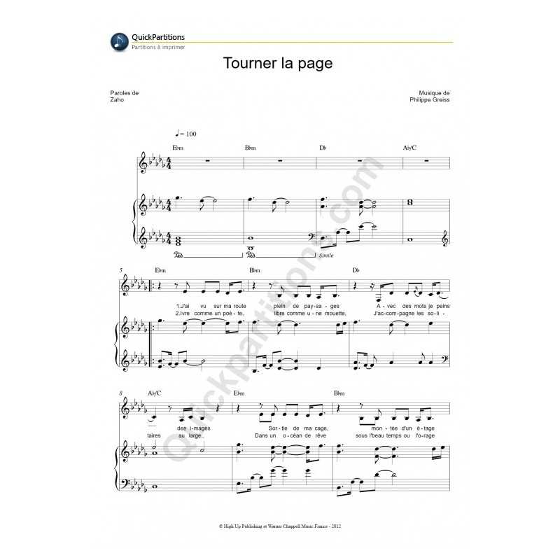 TOURNER LA PAGEPerformer : ZAHO Sheet music for piano vocal chords