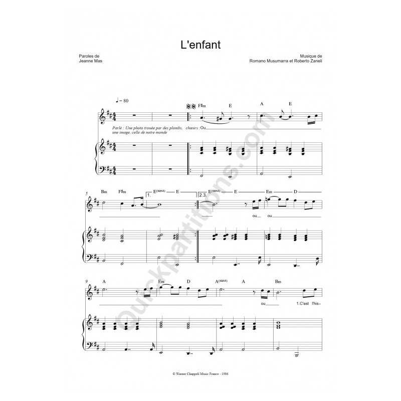 L'ENFANTPerformer : Jeanne MAS Sheet music for piano vocal chords