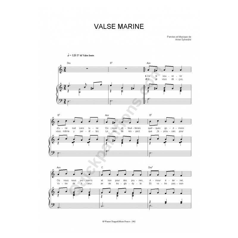 VALSE MARINEPerformer : Anne SYLVESTRE Sheet music for piano vocal chords