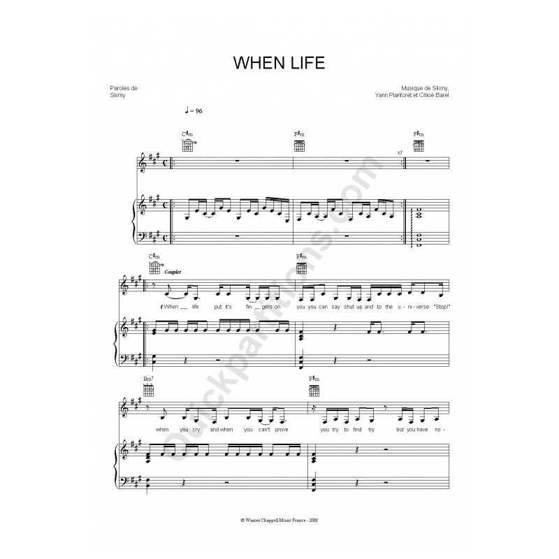 WHEN LIFEPerformer : SLIIMY Sheet music for piano vocal guitar