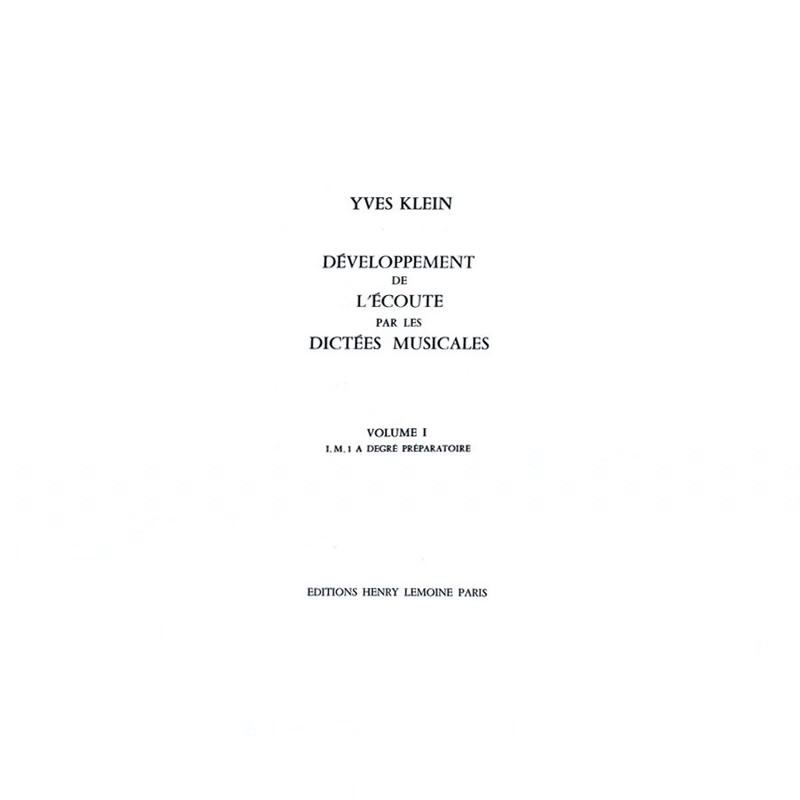 DÉVELOPPEMENT DE L'ÉCOUTEMusical dictationsAuthor : Yves KLEIN SheetmusicPages : 32Publisher : Henry LEMOINE