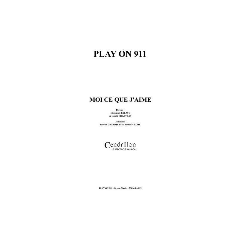 MOI CE QUE J'AIME Auteur : Etienne DE BALASY & Gérald SILBEYRASCompositeur : Fabrice GRANDJEAN & Xavier PLECHEInterprète : CENDRILLON Extrait de la Comédie Musicale CendrillonPartition piano chant et grilles guitare (+accords)