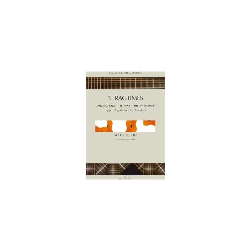 3 RAGTIMES Partitions pour 2 guitaresAuteur : Scott JOPLIN Média : PartitionStyle : classiqueNiveau / Difficulté : 3Nombre de pages : 13 + 13Original Rags - Bethena - The EntertainerEditeur : Henry LEMOINE