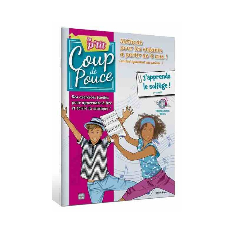 Le p’tit Coup de Pouce solfège avec fichiers audio comprend 48 pages en couleurs pour apprendre facilement les bases essentielles du solfège à partir de 6 ans.