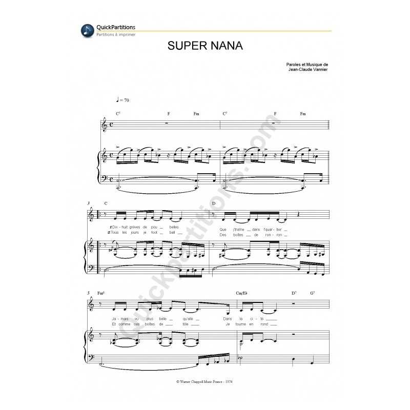 SUPER NANAInterprète : Michel JONASZ Partition Piano/Chant/AccordsPartition feuillet (reliure cahier 21x29,7cm).