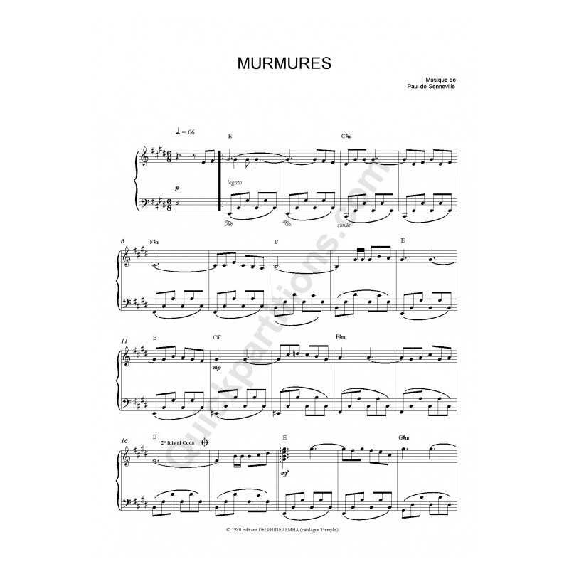 MURMURESInterprète : Richard CLAYDERMAN Partition Piano soloPartition feuillet (reliure cahier 21x29,7cm).