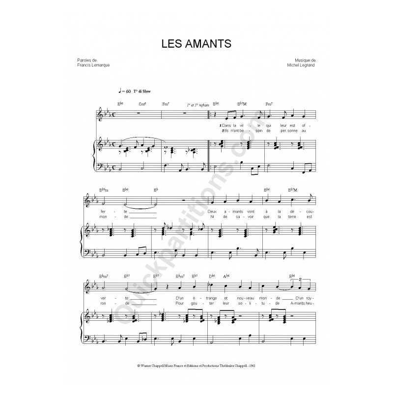 LES AMANTSInterprète : Francis LEMARQUE Partition Piano/Chant/AccordsPartition feuillet (reliure cahier 21x29,7cm).