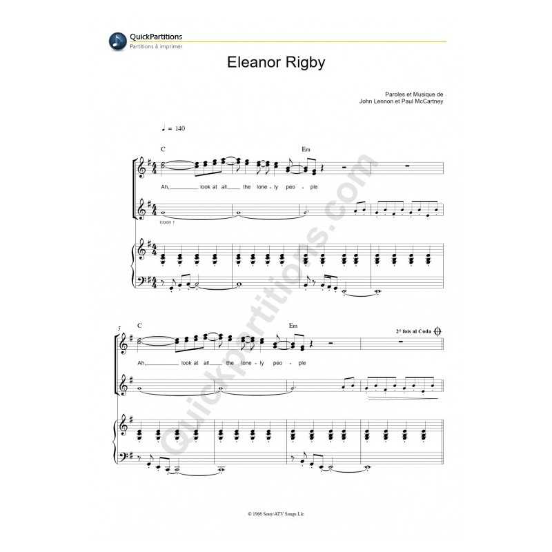 ELEANOR RIGBYInterprète : THE BEATLES Partition Piano/Chant/AccordsPartition feuillet (reliure cahier 21x29,7cm).
