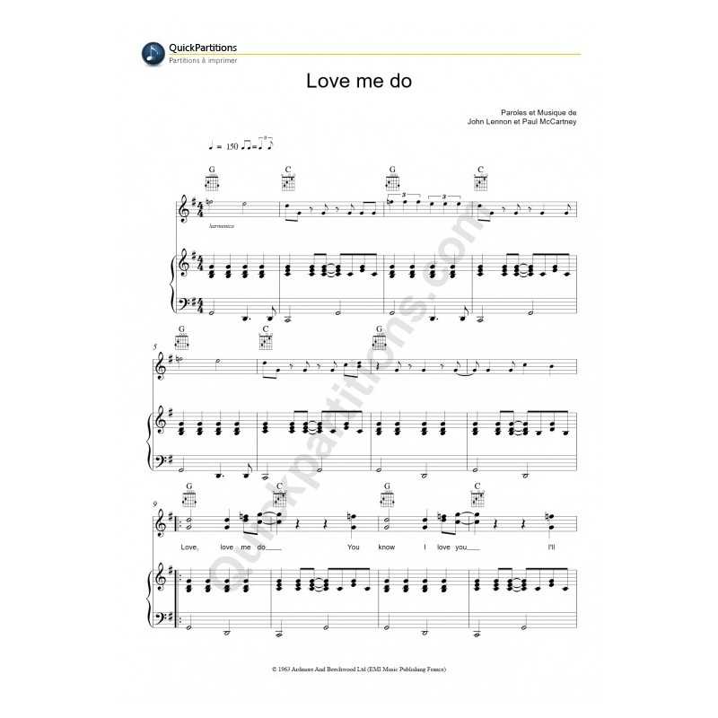 LOVE ME DOInterprète : THE BEATLES Partition Piano/Chant/GuitarePartition feuillet (reliure cahier 21x29,7cm).