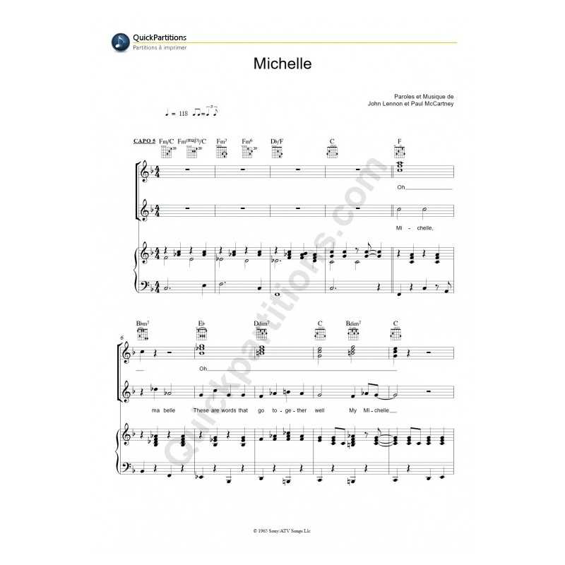 MICHELLEInterprète : THE BEATLES Partition Piano/Chant/GuitarePartition feuillet (reliure cahier 21x29,7cm).