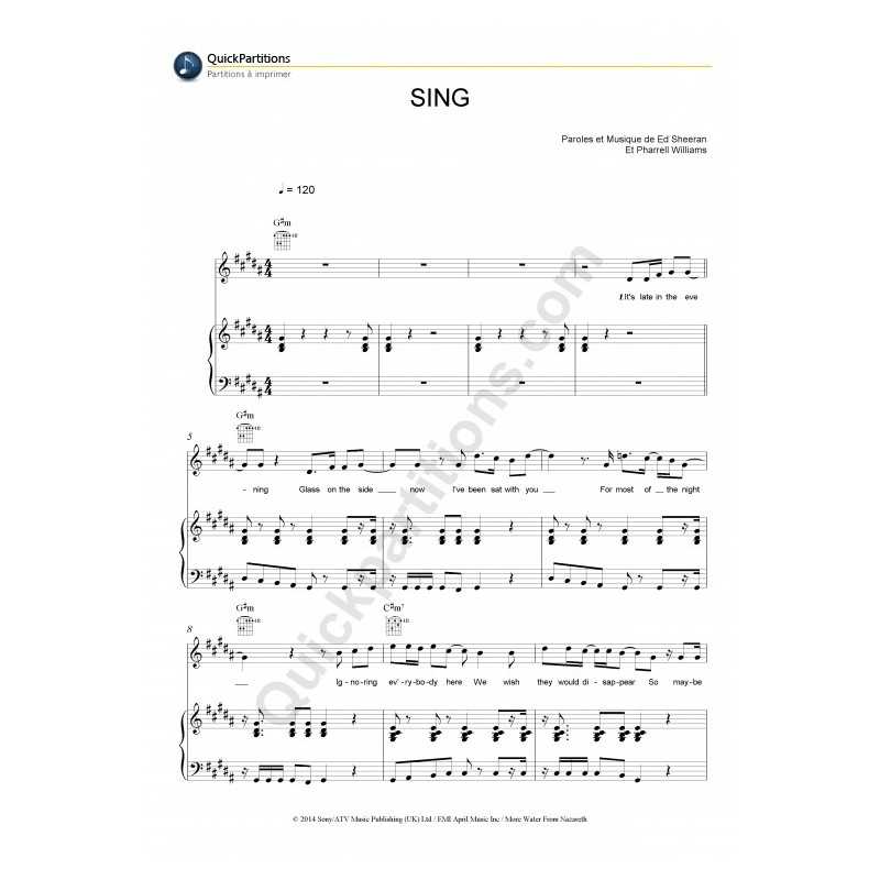 SINGInterprète : Ed SHEERAN Partition Piano/Chant/GuitarePartition feuillet (reliure cahier 21x29,7cm).