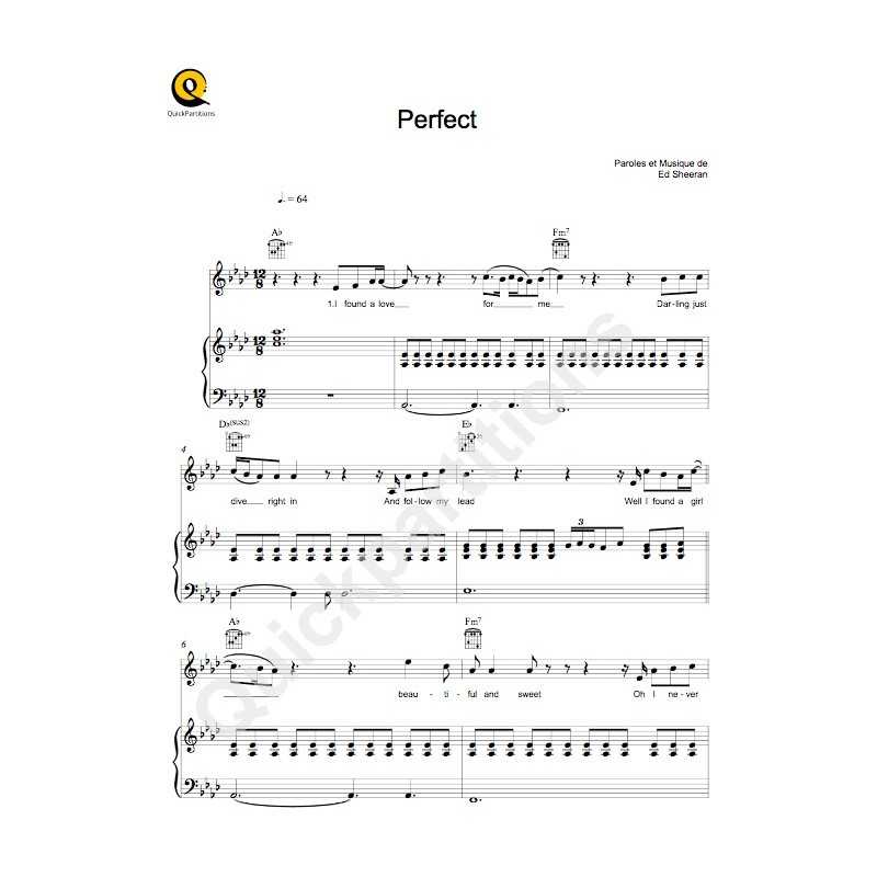 PERFECTInterprète : Ed SHEERAN Partition Piano/Chant/GuitarePartition feuillet (reliure cahier 21x29,7cm).