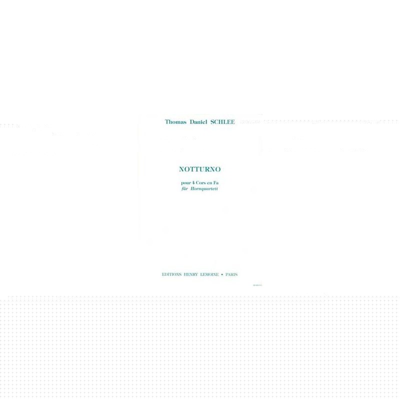 NOTTURNO OP.35Partitions pour 4 corsAuteur : Thomas Daniel SCHLEE Média : PartitionNombre de pages : 6 + 4x2Style : contemporainEditeur : Henry LEMOINE
